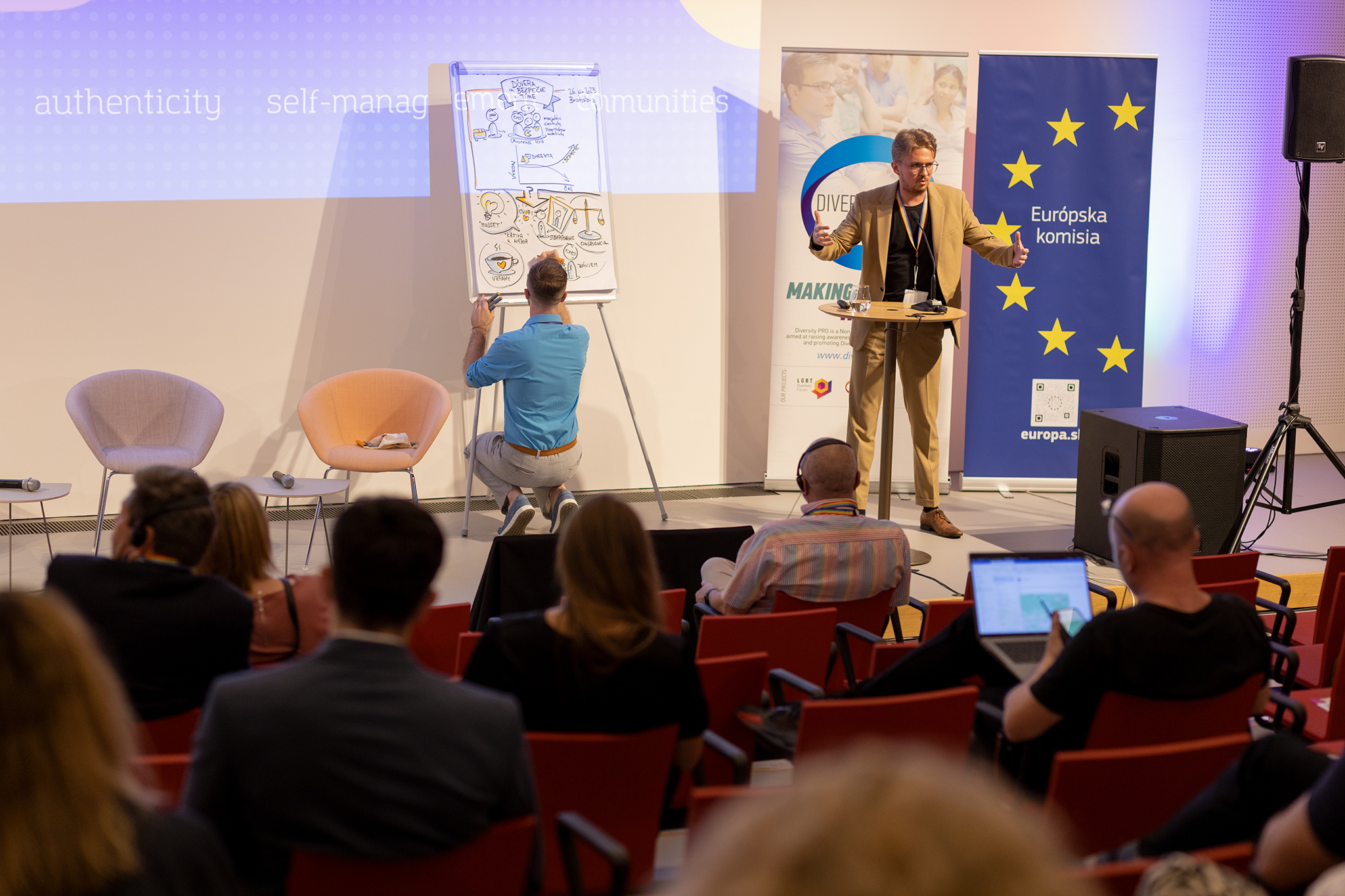 LGBTI+ Business Forum is organized by Diversity Pro. The event is co-organized by the Representation of the European Commission in Slovakia. The partners of the event are IBM, the Embassy of the Kingdom of the Netherlands in Slovakia, the Slovak National Gallery, the European Investment Bank in Slovakia and the Office of the European Parliament in Slovakia.